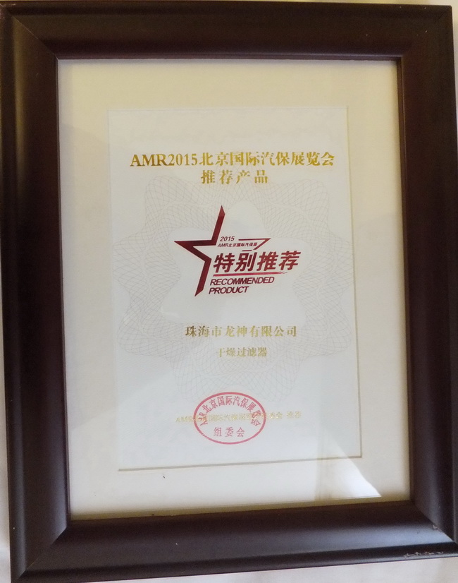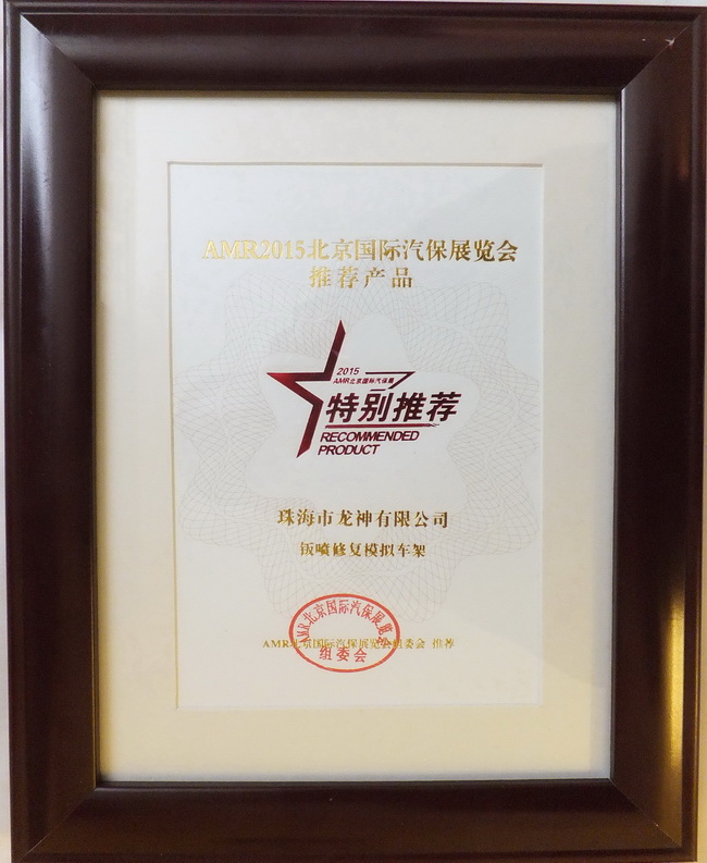 2015年4月8日,2014年度“20佳汽保產(chǎn)品”、“20佳維修工具”、AMR2015北京國(guó)際汽保展推薦產(chǎn)品頒獎(jiǎng)晚宴于北京成功舉辦。珠海龍神“干燥過(guò)濾器”,“鈑噴修復(fù)模擬車(chē)架”榮獲ARM2015北京國(guó)際汽保展覽會(huì)推薦產(chǎn)品獎(jiǎng)。