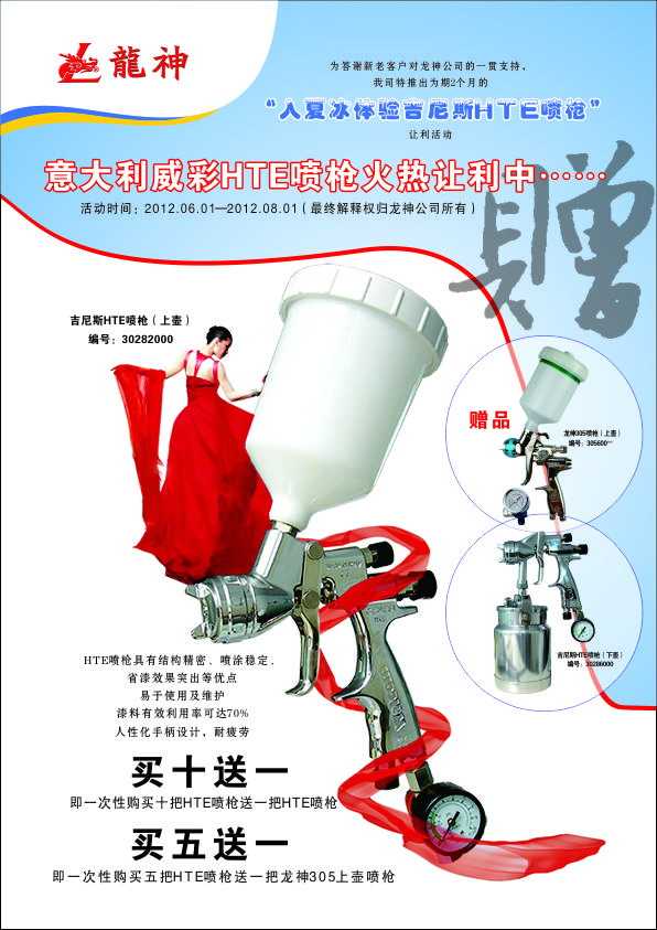1、 買十送一(即一次購買十把HTE噴槍送一把HTE噴槍)