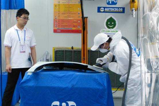 國賽展位龍神現(xiàn)場演示保險杠修復(fù)