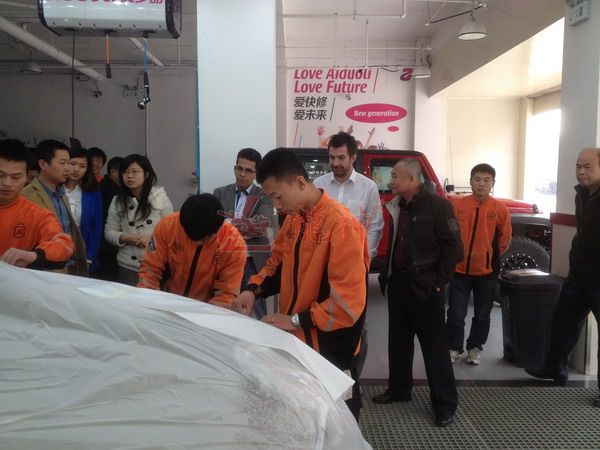 2013年特邀國外專家赴北京車爵士演示車縫泡膠條的使用 本司訊:2013年4月北京晴空萬里,龍神公司特邀英國專家一行五人,來到了北京車爵士進(jìn)行汽車噴涂遮蔽技術(shù)交流。首先公司一行了解車爵士的汽車噴涂情況及詢問了使用的遮蔽工具情況。隨后英國專家針對在汽車噴漆時難噴涂的車門縫隙、玻璃死角等地方的專業(yè)遮蔽工具的演示。車縫泡沫膠:用于車身所有縫隙的遮蔽,有效隔離及遮蔽漆霧噴入車縫里。 2013-04-08 12194