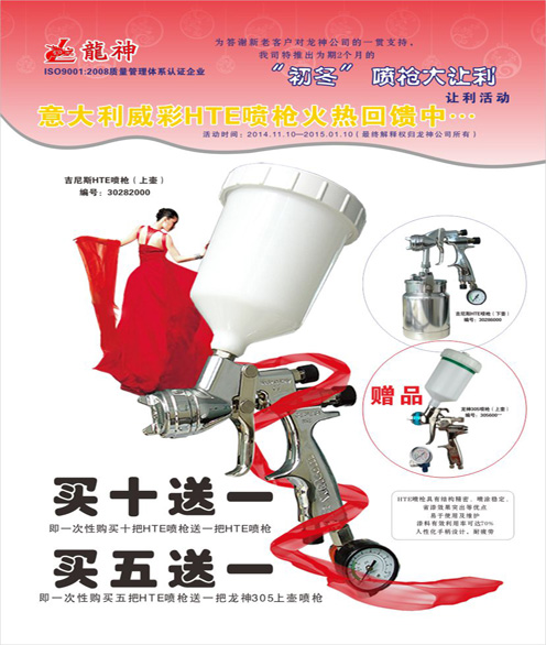 2、買五送一(即一次購買五把HTE噴槍送一把龍神305噴槍)