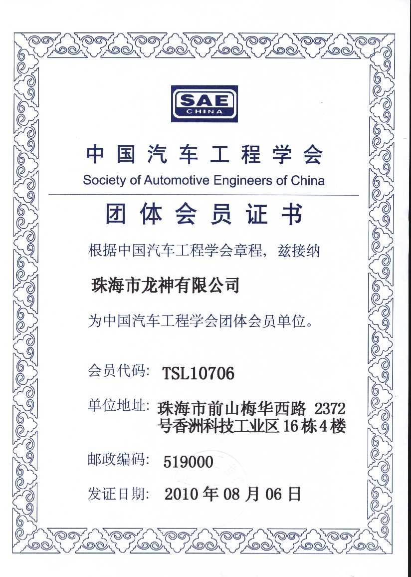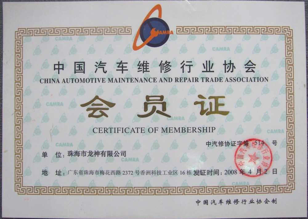 會員證書 會 員 證 書2020年廣東省汽車保修設(shè)備商會-監(jiān)事單位中國汽車工程學(xué)會團(tuán)體會員證書中國汽車維修行業(yè)協(xié)會會員證珠海市人民對外友好協(xié)會第二屆理事會團(tuán)體會員 2012-11-27 35094