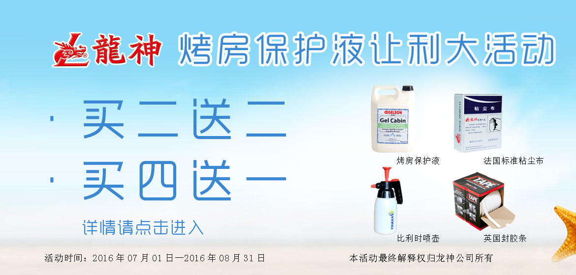 意大利烤房保護液讓利大活動 2016-06-24 11188 “熱夏、清涼、給力”意大利烤房保護液讓利大活動。買2罐,送法國“GekateX”標準粘塵布2盒;買4罐,送英國封膠條(1卷)或比利時噴壺(1個)。